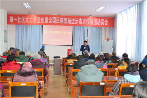 1月12日,独山子区第一社区召开了创建“全国民族团结进步示范市”动员大会,共有社区居民代表50人参加。