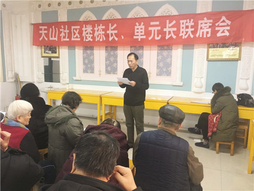 1月10日,驻天山社区工作队组织召开社区楼栋长、单元长联席会,共有54名楼栋长、单元长参与。