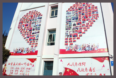 驻北坡社区工作队将213张民族团结活动照片,组成巨幅心形“笑脸墙”定格民族团结浓情瞬间,邀请红细胞、居民志愿者中的“草根画家”一笔一划“绘”聚民族团结温暖大爱,以“民族团结文化墙”浇灌民族团结之花常开常盛。