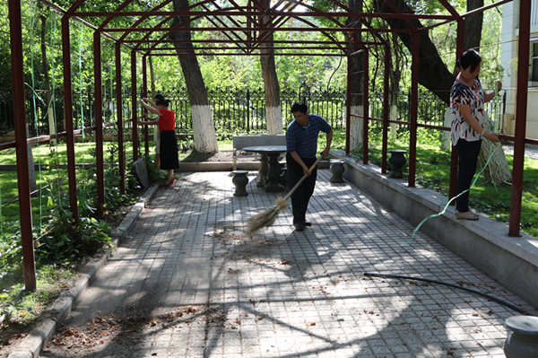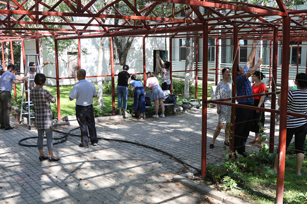 会议结束后,全体党员干部来到市机关退休站后院开展义务劳动,为后院长廊的爬山虎上架做好牵引,并打扫冲洗后院地面,近两个小时的劳动,退休站后院焕然一新。相信不久之后,爬山虎会再次爬上长廊,为离退休职工创造一个凉爽适宜的活动环境。