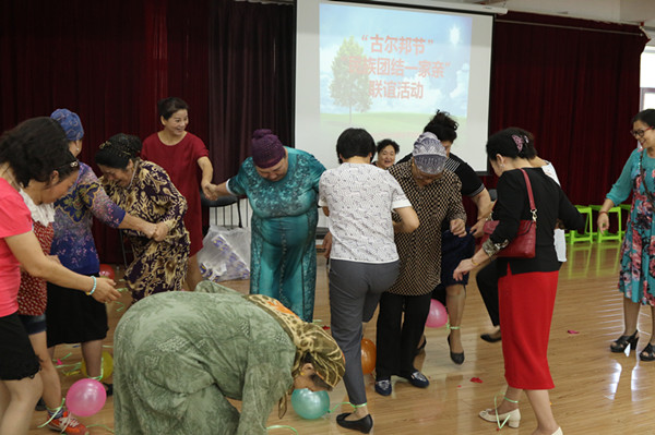 活动在愉快的趣味游戏中拉开帷幕,接力运乒乓球、齐心协力踩气球等欢快的小游戏瞬间带动了现场的气氛,大家脸上笑容洋溢,欢呼声不断。结对亲人们组队合作完成趣味游戏,在娱乐中增进感情,拉近距离;在合作中促进交流,互帮互助。活动接近尾声,欢快的麦西莱普音乐将活动推向高潮,结对亲人们不约而同走到场地中间,迈起轻快的步伐,扬起轻柔的手臂,载歌载舞,好不热闹,现场氛围一派祥和。
