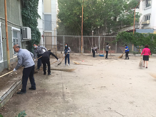 “人人争当创城志愿者”活动,打扫门球场