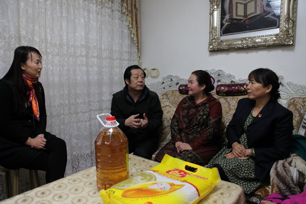 11月15日下午,市总工会在联点社区——白碱滩区三平路街道五新社区召开“民族团结一家亲”启动仪式暨座谈会,正式启动结对认亲活动,市总工会领导班子、五新社区居委会、“访惠聚”工作组、结对认亲居民参加了活动。