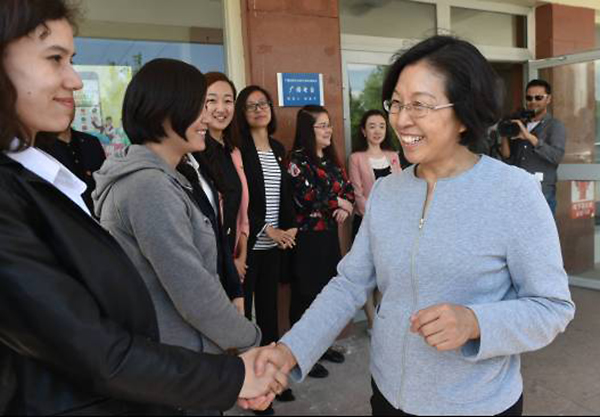 “今天是五四青年节,祝青年朋友们节日快乐!”邬瑛一行首先来到广播电视中心,参观了电视台演播厅、广播电台直播间,最直观的了解了媒体行业团员青年们的工作岗位。在与团员青年交流时邬瑛表示:“在新媒体时代,网络传播迅速,人人都可以是新闻发言人。而作为年轻一代的新闻媒体工作者,大家不仅要继承老一辈留下的优良传统,更要自觉践行社会主义核心价值观,传播先进文化,弘扬社会正气,努力提高新闻报道的品位和格调。”