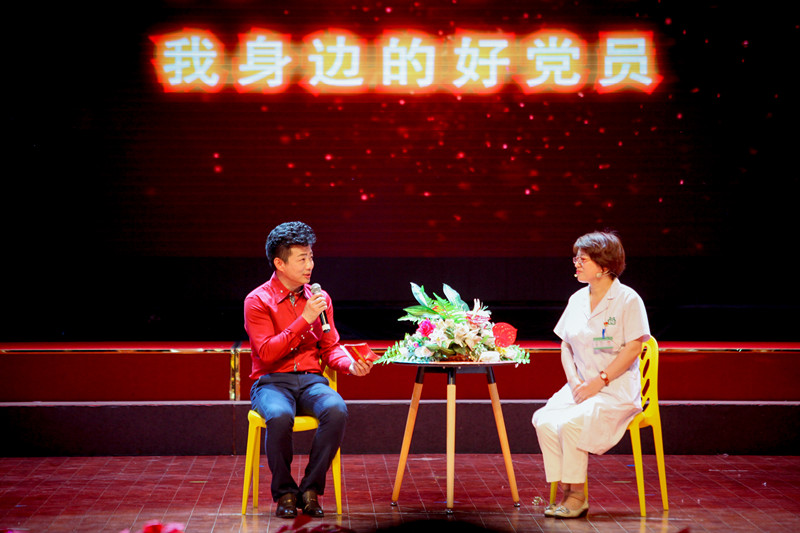 在随后的榜样凝聚力量----身边的好党员访谈中,对教育执着追求用自己的行动点燃教育火炬的校长--克拉玛依市第二十小学校长杨秀英、用真情温暖社区的每一片天空的社区活地图---跃南社区居委会主任黄程玉、新时代石油工人的榜样----少数民族党员艾力江?阿布都热依木以及爱心妈妈阿尔孜古丽、白衣天使徐宗芬、自主创业的维族党员妇女早热木?依明”等6名党员代表一一走上舞台,与大家分享他们的故事和心路历程。朴实无华的讲述,发自肺腑的感悟,深深感染了在场的每一位党员,他们不忘最初的选择,始终与人民心心相印,用勤勉工作,向党和人民交出了一份合格的答卷。