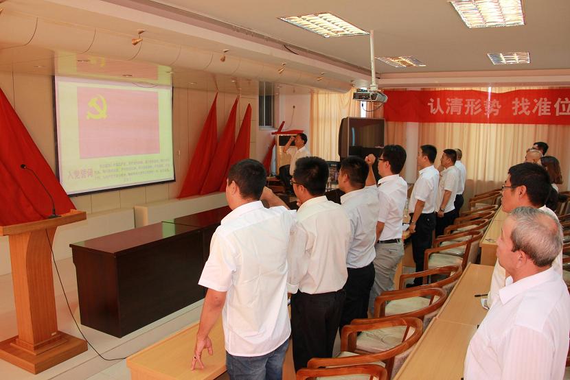 在举行庄严的宣誓后,观看了中央电视台录制的《中国共产党光辉历程-开天辟地:中国共产党诞生》视频,党总支书记张庆同志结合建党95周年暨“两学一做”党性主题教育和自治区纪律教育年活动上了微型党课。