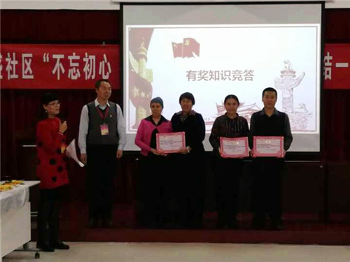 在活动中,表彰了2017年度社区民族团结模范对子、优秀楼栋长和单元长,播放了社区老党员祝福十九大的微视频,开展了十九大精神有奖知识问答以及趣味游戏活动。
