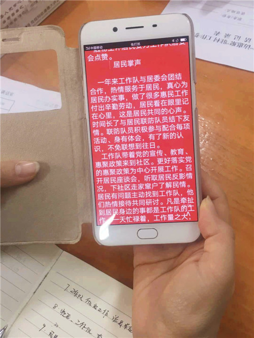 在考核过程中,发生了很多感人的事情。克拉玛依区文明供应社区居民孙长江激动地向考核组成员讲述工作队为群众所做的好事实事,拿出手机展示自己拍摄的工作队废寝忘食的工作场景、组织活动的热烈场面,以及自己写的日记《居民的掌声》。