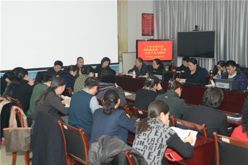 在康乐社区居委会,肉孜麦麦提·巴克以《不忘初心、牢记使命、实干前行》为主题,与大家分享了他参加党的十九大会议期间的所见所闻、所思所想,并解读了十九大报告。