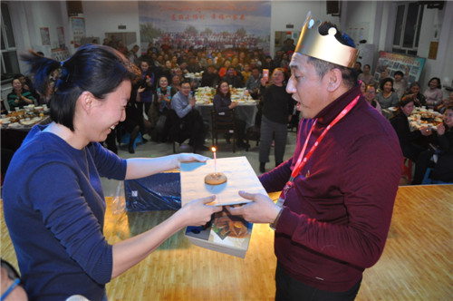 “今天是亲戚们欢聚一堂的好日子,还是一个特别的日子——咱们工作队副队长欧安民的生日!”主持人赵林梅说。“惊不惊喜?意不意外?”全然不知的欧安民被眼前的一幕浸湿了眼眶。在全场100余人的掌声中走上舞台,“这个生日必定成为我人生中永远的记忆,感谢小拐村的亲戚朋友们,我很荣幸能与我的队友们为大家服务,感谢各位!”欧安民说。