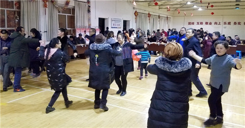 当晚的“结亲周”百家宴上,结对亲戚肩并肩,拿着精心制作的美食,一起参加活动。在同跳一支舞环节中,亲戚们伴随着音乐欢欣起舞,拍照,合影留念,将活动推向了高潮。