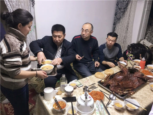 在社区第一书记、工作队队长侯建平的带领下,大家分工合作,煮茶、炒菜、包饺子,不一会一盘盘色香味俱全的美食就端上了桌。大家一边吃一边聊,高兴地品尝着一起动手制作的美食,欢乐的气氛不断高涨。