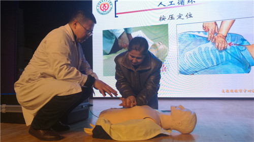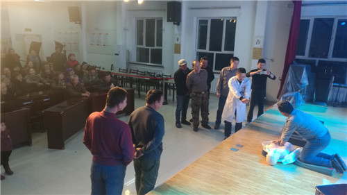 1220日晚,小拐村的活动里坐满了村民,讲台上有个穿着白大褂的人正在为大家演示紧急情况下如何进行抢救。
