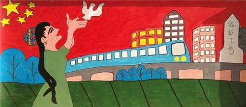 “这可都是原创呀,我们用心绘出了各族干部群众对团结稳定、美好生活的向往。”志愿者、社区居民杨雅婷说。你勾线,我涂色,不一会儿大伙儿衣服上、手上沾满了颜料,被彼此的样子逗得乐不可支。