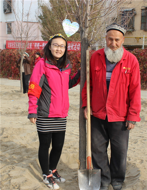 她与邻居塔吉古丽·拜合提亚一家结为“亲戚”,互学语言,互帮互助,两家人越走越近、越走越亲,特意一同来植团结树。