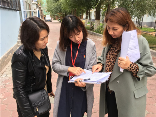 克拉玛依区财政局服务基层干部和工作队员在胜利路街道红山社区走访群众。