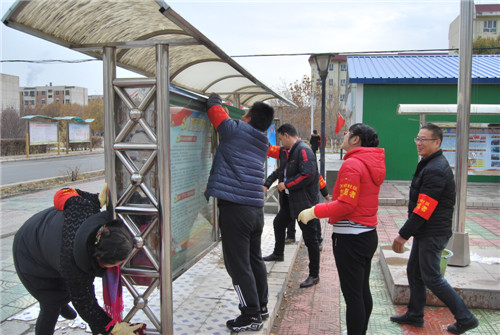 克拉玛依市白碱滩区金龙镇街道万向社区“红细胞”党员开展义务劳动。