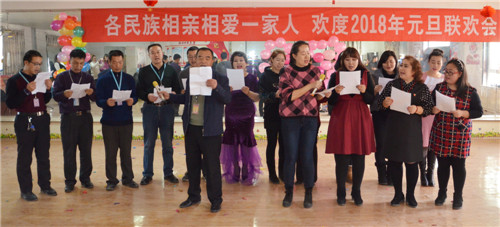 近日,驻金龙镇养殖基地管委会工作队、管委会共同举办了各民族相亲相爱一家人、欢度2018年元旦联欢座谈会