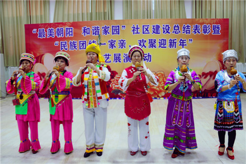 1228日,驻朝阳社区工作队、社区共同开展朝阳社区2017最美朝阳·和谐家园社区建设总结表彰暨民族团结一家亲·欢聚迎新年文艺展演。工作队、社区工作人员及居民150余人参与。