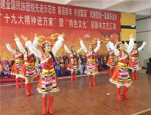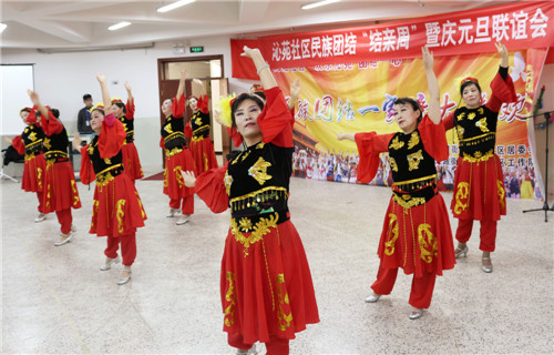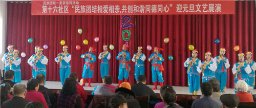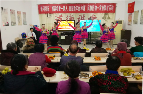 12月28日,新河社区举办“相亲相爱一家人·喜迎新年促和谐”“民族团结一家亲”联谊会。社区志愿者自编自演了精彩的文艺节目。
