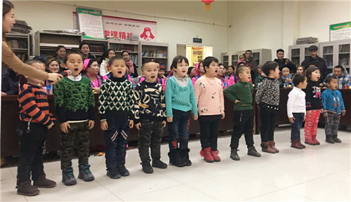 12月30日,驻小拐国营牧场工作队组织居民开展了“民族团结一家亲”之“和谐牧场齐欢聚·喜迎2018年”联欢活动。牧场幼儿园小朋友为大家齐唱《国旗国旗多美丽》 。