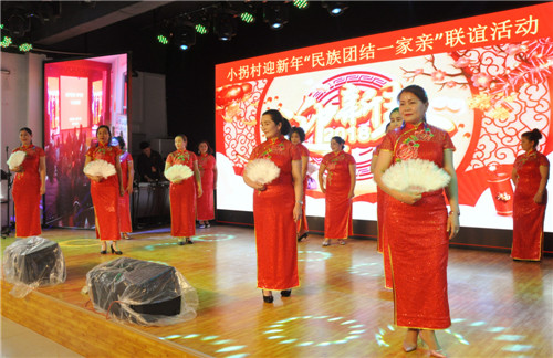 12月29日,驻小拐村工作队联合村“两委”组织开展了“民族团结一家亲”迎新年联谊活动。小拐乡文化站表演队为大家倾情献艺,模特秀让观众大饱眼福。