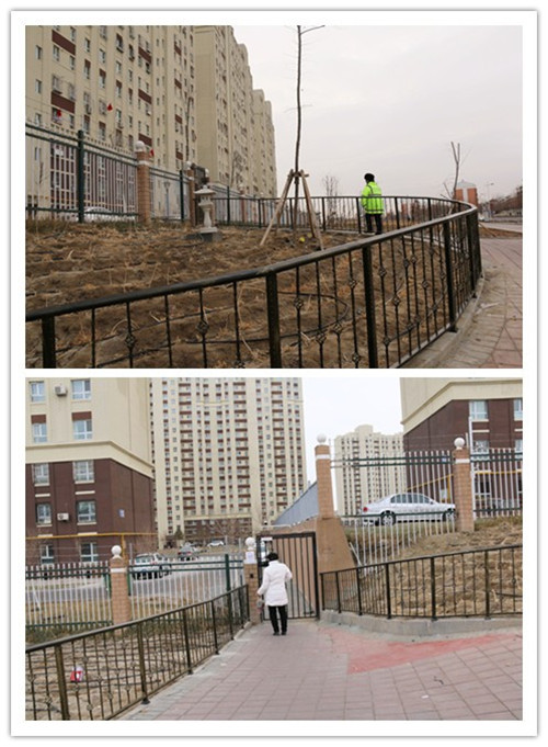 光明鸿雁社区老年人居多,公共设施陈旧。工作队在走访入户过程中了解到,小区2栋和20栋两栋楼房单元门口道路结冰,老人出行有安全隐患,便在这两栋楼的7个单元门口铺设了防滑地毯,让大家出行无忧。