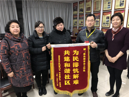 近日,光明小区5栋的居民代表们专程来到光明鸿雁社区居委会,将锦旗交到了工作队副队长刘江的手中。