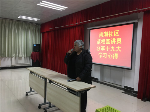 1月2日晚,南湖社区三楼会议室传出阵阵掌声,来自南湖社区“阿达西宣教队”的宣讲员阿依吐逊·伊地热斯正在和各族居民分享党的十九大报告部分章节的心得体会,共有 92人参加了活动。