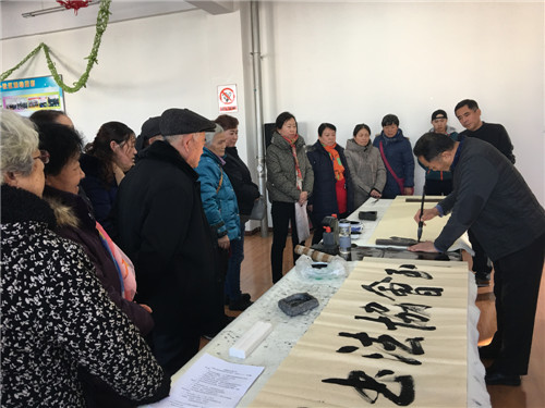 2017年12月31日,独山子书法协会在第十一社区举办了“到群众中去”送书法活动。活动由独山子区文联主办,独山子区文体旅游局、驻独山子区第十一社区工作队协办。独山子书法协会的书法家们现场为老百姓送书法。书法家们挥毫泼墨,留下了“依法治疆、团结稳疆、长期建疆”等宣传党十九大的方针和政策的书法作品,赢得现场群众的赞赏。书法家们还现场教授居民写毛笔字要领。大家参与度强,积极性高,现场氛围十分活跃。