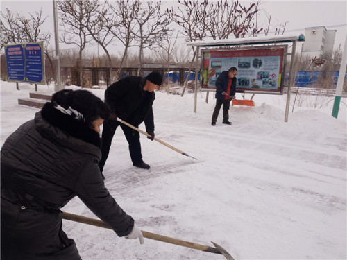 回到居委会,工作人员们也并没有闲下来。他们立刻拿起雪具,帮助辖区的居民,企业,以及保洁工人们共同清理居委会院内外及辖区主干道上的积雪。大家你一锹我一铲,不一会就将积雪清理完毕。望着外出的居民走在已清扫干净的大路上,一边向他们问候一边冲他们竖起大拇指,工作人员们欣慰地笑了。